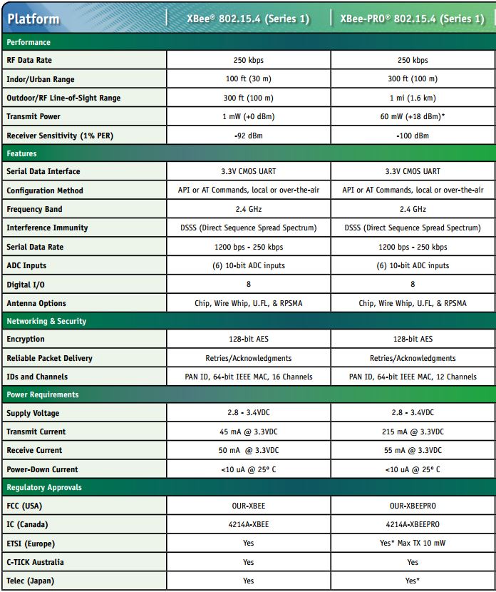 Series 1 vs Series 2 modules range of up to 100 feetSeries 1 “point to multipoint” – basically one device talking directly to one or more others in pre- defined network