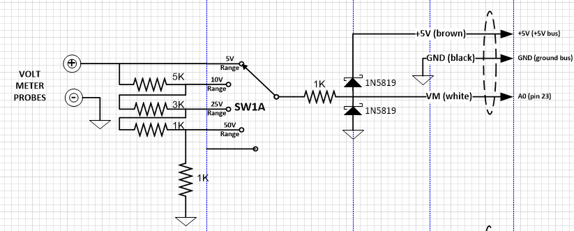 I have not updated the voltage divider but I plan on going to five switch settings (because that's what my switch has). With the old resistor values I get the following four ranges: