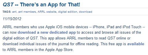 - http://www.arrl.org/news/em-qst-em-there-s-an-app-for-that